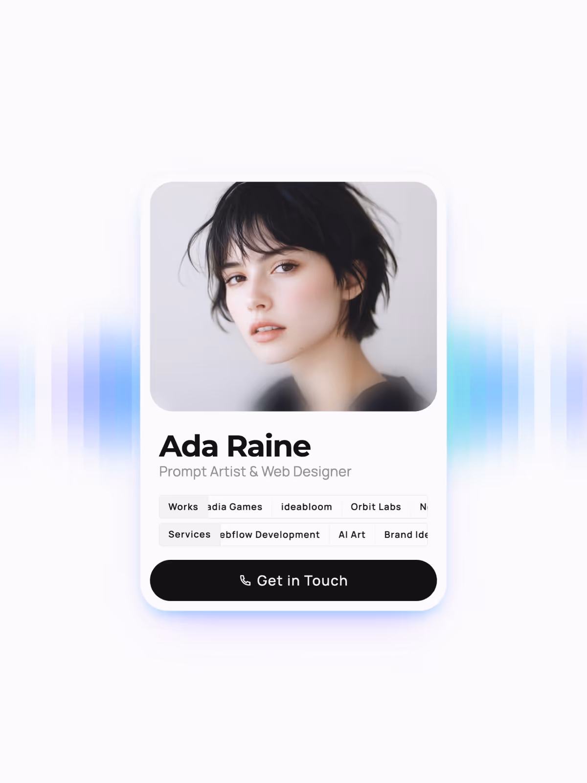 A sleek, minimalist portfolio template for digital designers, AI prompt artists, photographers, and creatives. Showcase your work with bold typography, smooth animations, and interactive card + bento layouts.